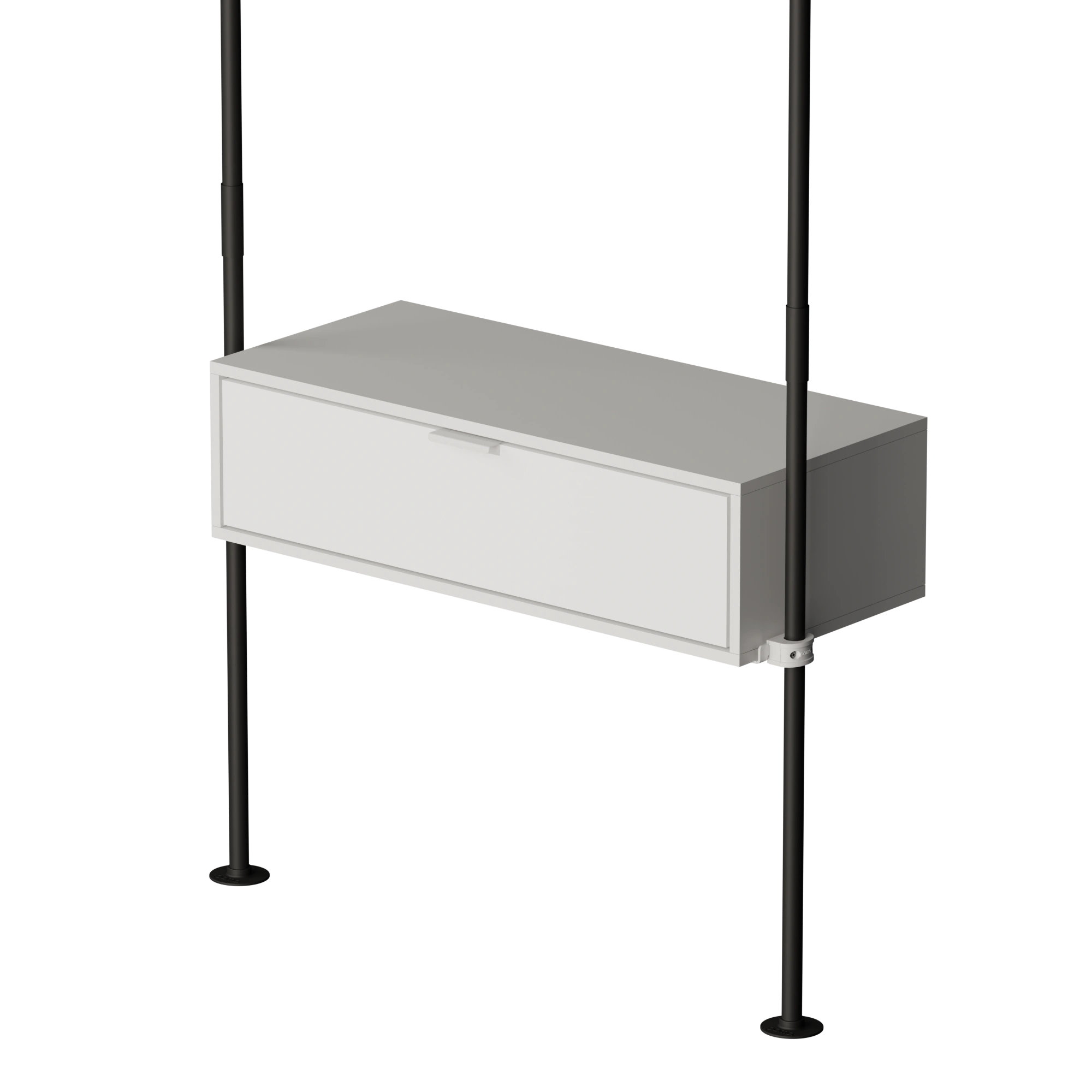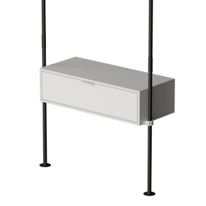 Nós da pamo. desenvolvemos móveis de tubo de alta qualidade e bem pensados, que trazem um design industrial rústico para a sua casa. Crie um guarda-roupa com espaço de armazenamento versátil através da barra de roupas com prateleira KIM 1 METAL 3. Ela combina um espaço prático para pendurar com prateleiras de metal estáveis e, assim, tem as vantagens de uma barra de roupas e de um sapateiro em um. Use seu espaço de forma inteligente!
