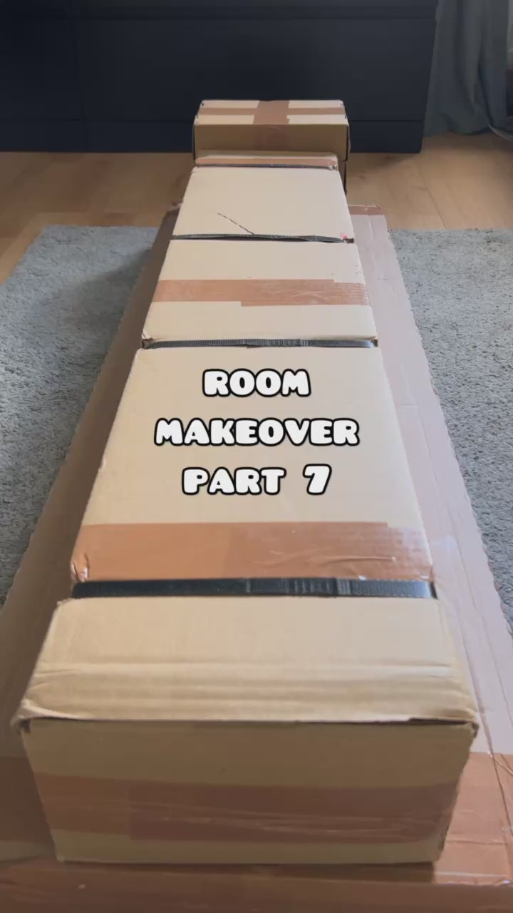 4️⃣ Ora sollevate il telaio completo con le tavole sulla cassettiera utilizzando 2 persone. Non dimenticare i cuscinetti adesivi per proteggere la cassettiera.